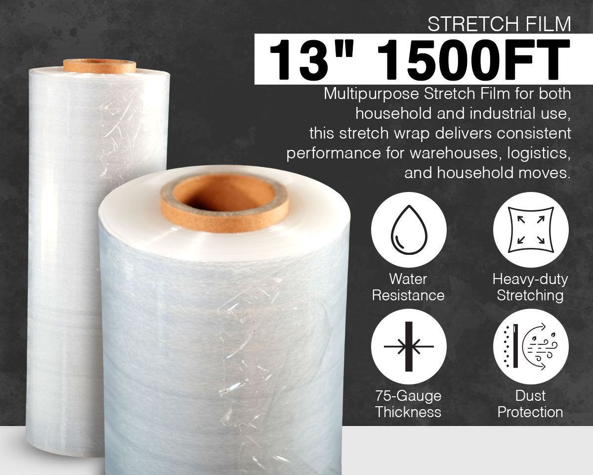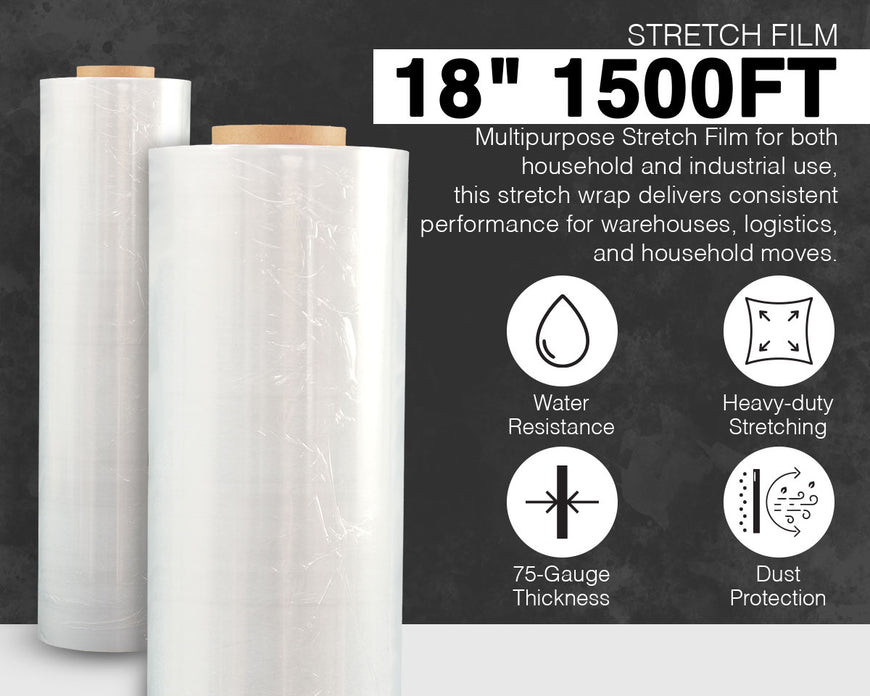 - Extra-Long 1500ft Roll: Generous roll length allows for efficient large-scale wrapping, reducing the need for frequent roll changes - perfect for warehouses, movers, and shipping operations.