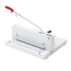 - Spindle-guided back gauge with calibrated crank and measurement scale