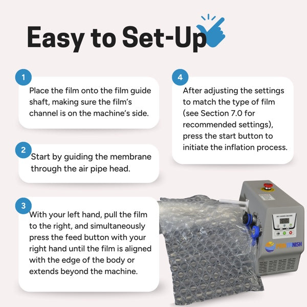 - Perfect for Pillow Bags: The machine inflates more air into pillow bags with a precise 3mm sealing contact gap, ensuring a secure and smooth seal.