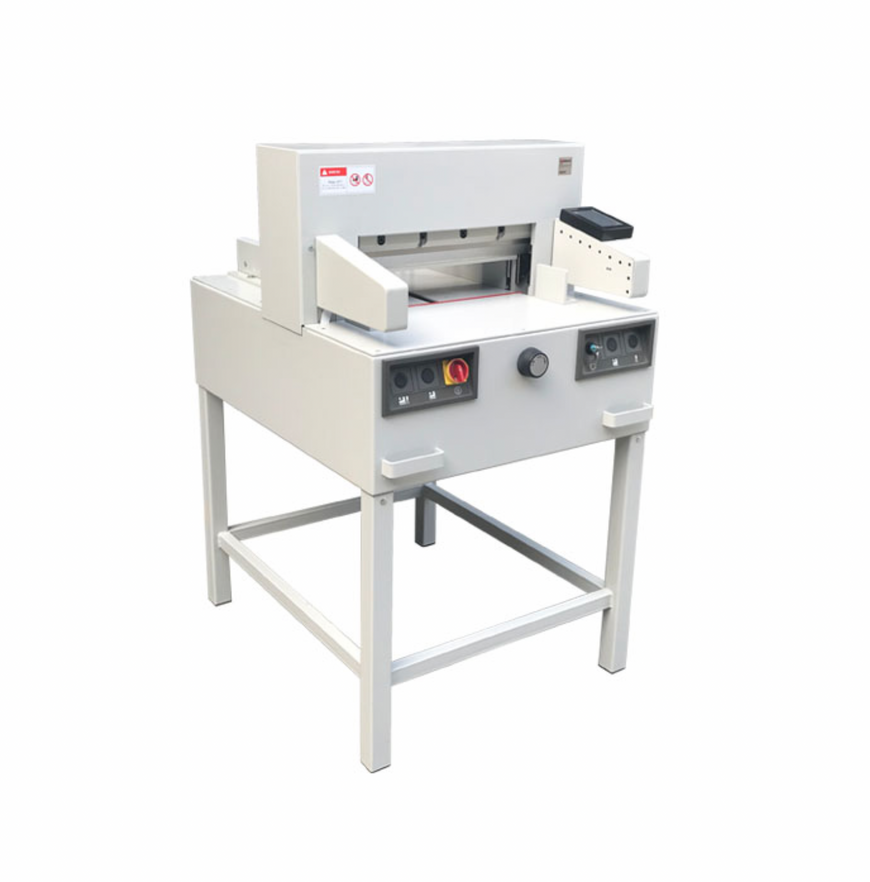 Reliable, Quality Electric Programmable Paper Cutter featuring an automatic clamp, programmable back gauge with touch pad.- 99 Programs with 99 steps