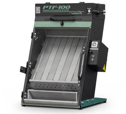 The patent-pending PTF-100 features a sturdy steel casing and a clear polycarbonate door with a dust-tight seal for a clean, mess-free experience.